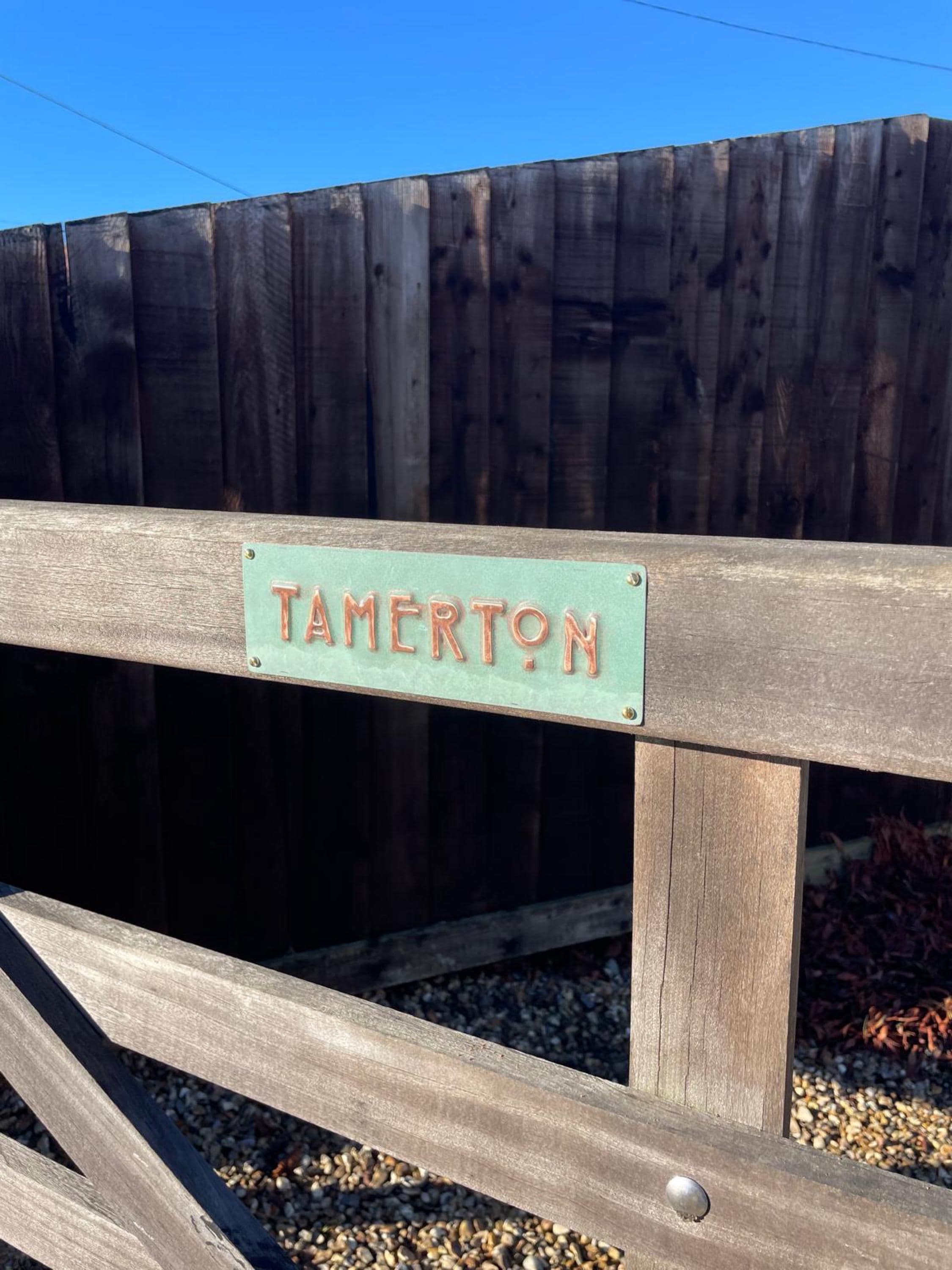 Small copper Gate door name Sign address plaque - up to 22 characters of your choice in 1" high Hill House font made from eco friendly copper - this is a 99% recycled product. Polished copper reflects car and street lighting so illumination may not be necessary - saves electricity.